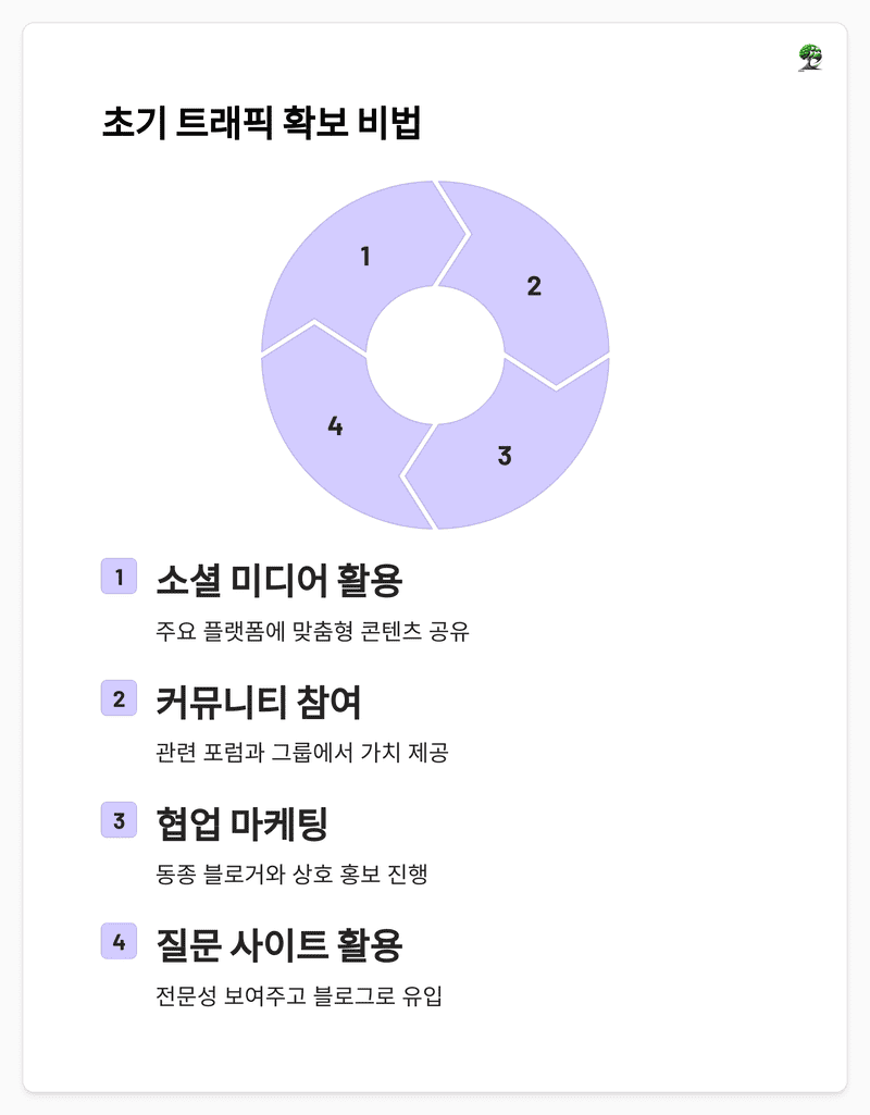 | 성장 초기 | 1,000~5,000/월 | 트래픽 증가 | 키워드 확장, 소셜 미디어 홍보, 일관된 게시 |