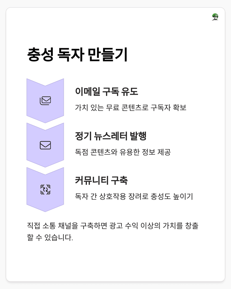 | 성장 중기 | 5,000~15,000/월 | 수익화 최적화 | 광고 위치 최적화, 이메일 리스트 구축 |