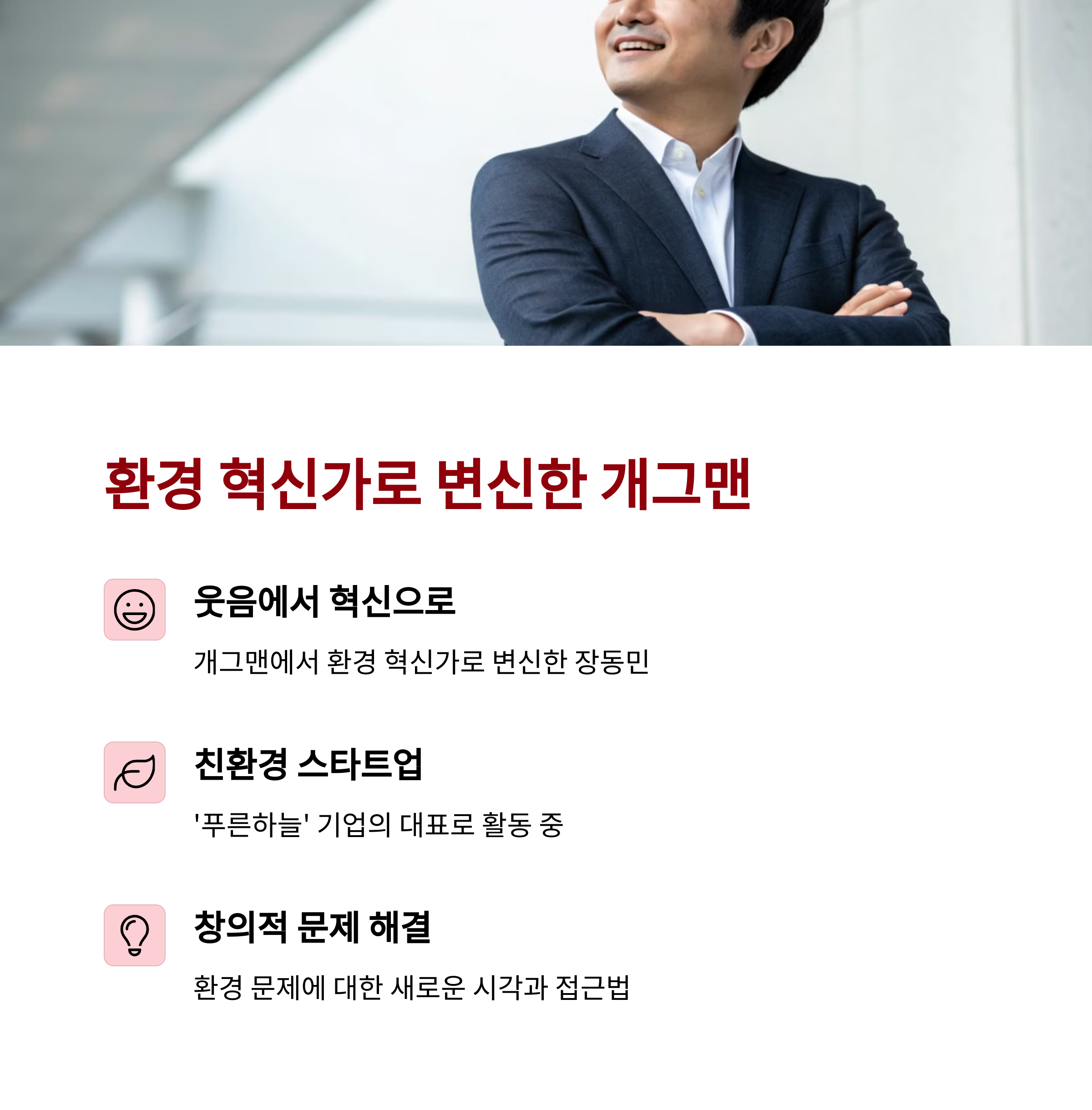 하지만 장동민 씨, 알고 보니 친환경 스타트업 ‘푸른하늘’ 대표로 활동 중!